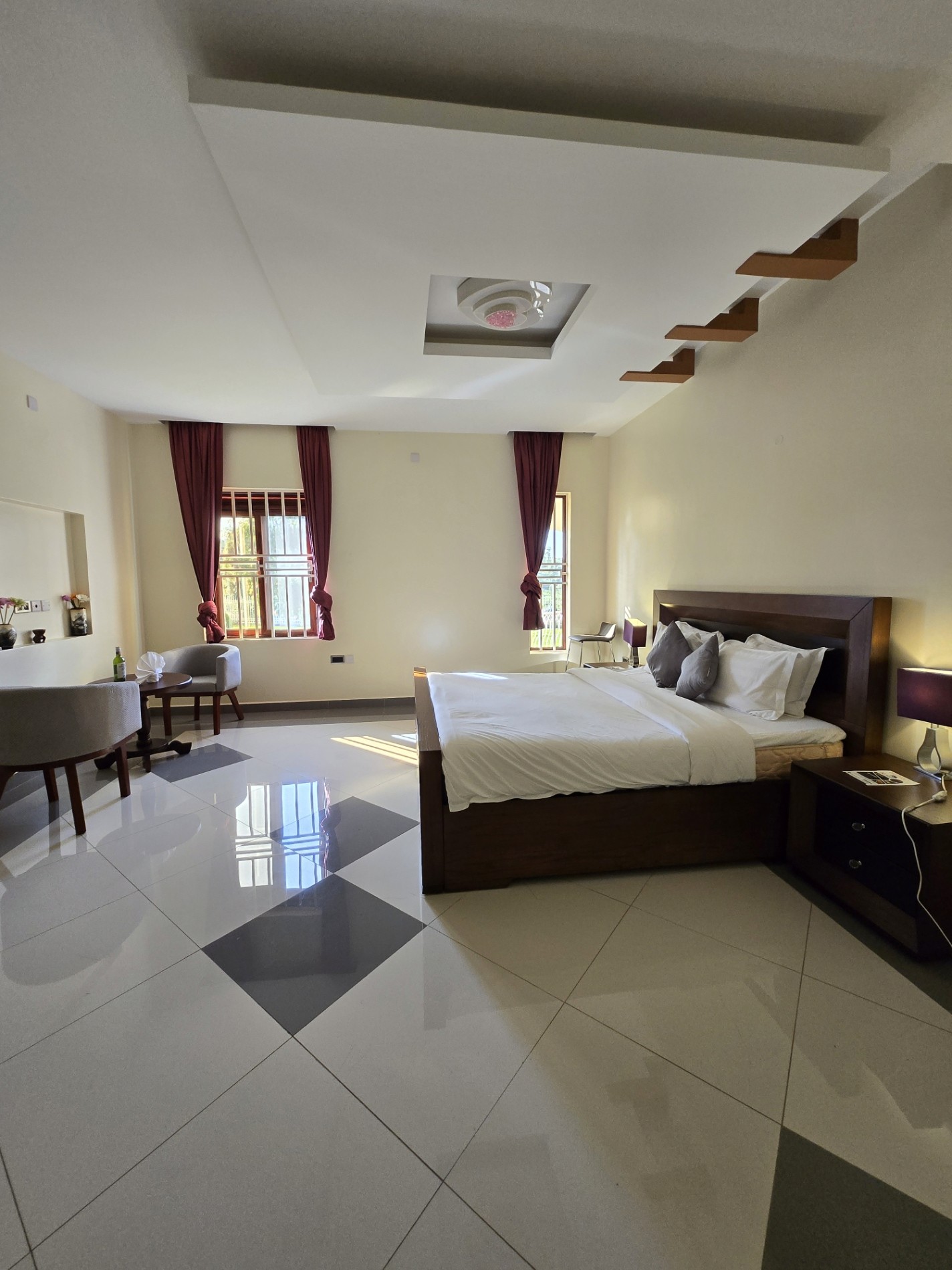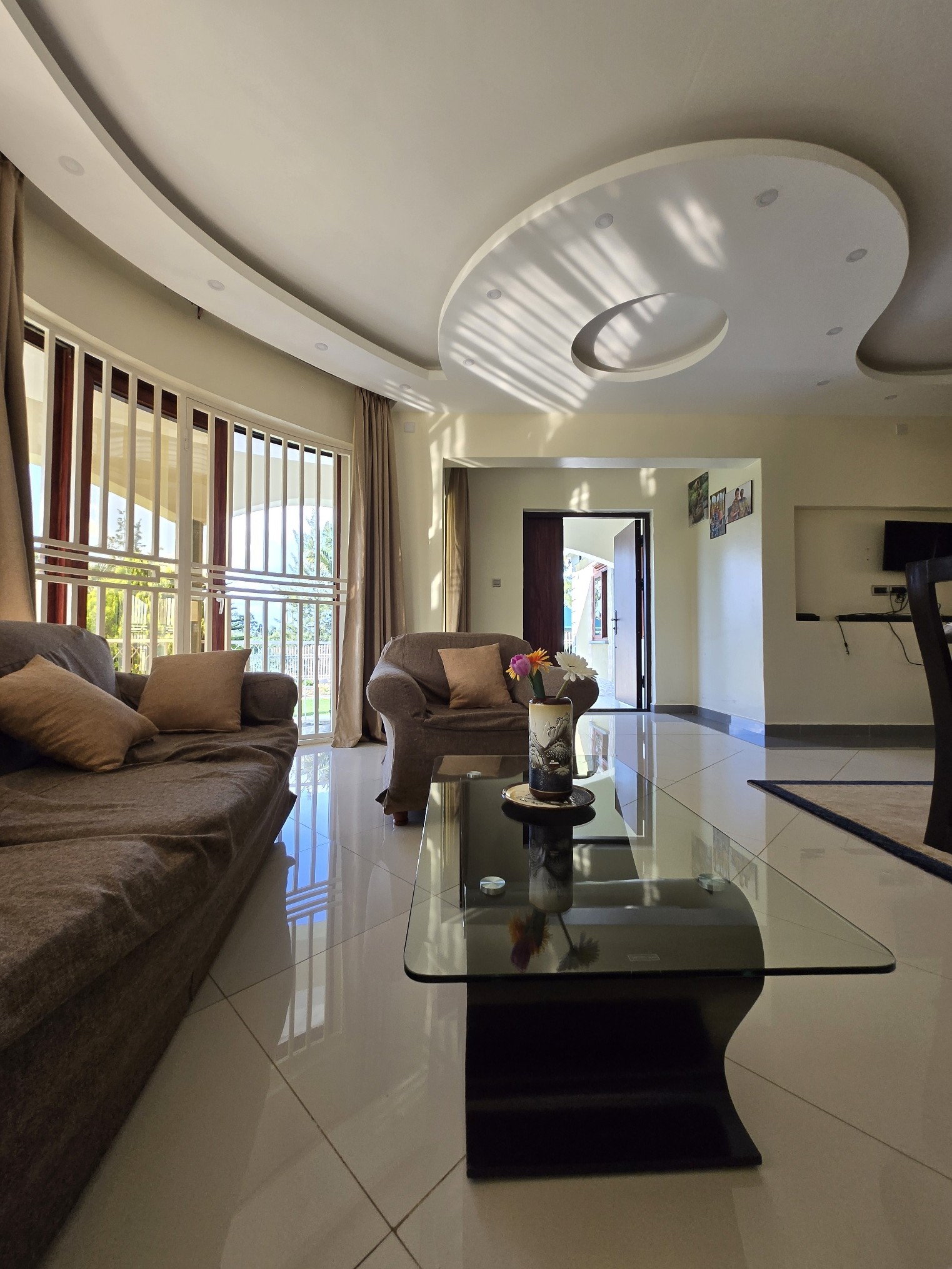 Kaije Villa offers an elevated countryside retreat designed for guests who appreciate space, privacy, and refined comfort. Thoughtfully crafted, this exclusive accommodation blends modern elegance with the calm beauty of nature, creating a perfect escape for families, groups, and discerning travelers. The property features four spacious bedrooms, three modern bathrooms, and a fully equipped private kitchen paired with an elegant dining area—ideal for both short and extended stays. Expansive living and lounge spaces provide a warm, inviting atmosphere for relaxation, entertainment, or quiet moments after a day of exploration. Outdoors, guests enjoy lush private gardens, a tranquil setting for morning walks or evening relaxation, along with ample secure parking within a private compound. Every detail at Kaije Deluxe is designed to offer comfort, privacy, and convenience while maintaining a close connection to the natural surroundings. Whether you’re seeking a peaceful getaway, a family holiday, or a premium countryside stay, Kaije Deluxe delivers a refined experience where luxury meets serenity in the heart of Fort Portal.